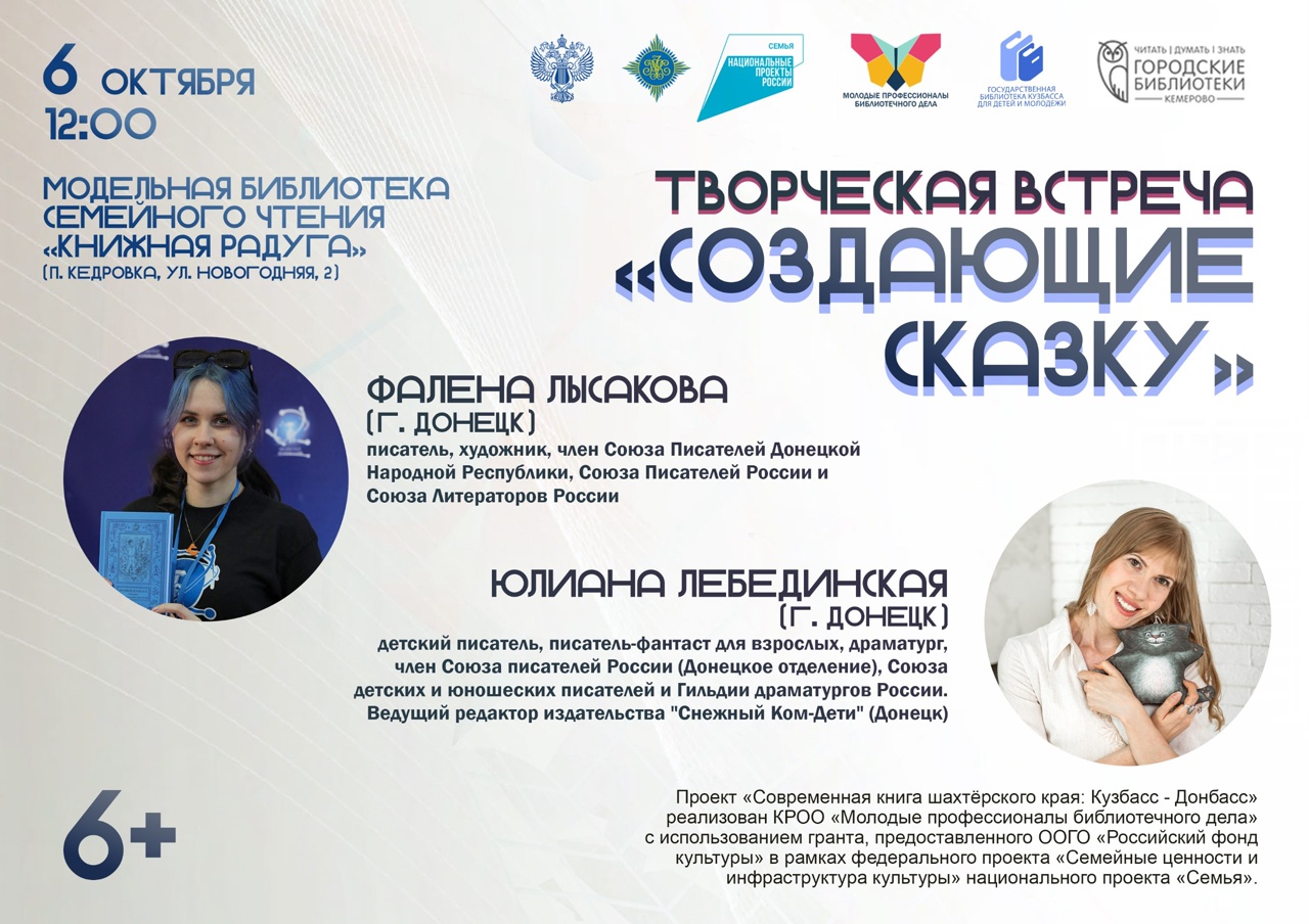 02.10 |  | Творческая встреча пройдет с писателями из Донецка в модельной библиотеке «Книжная радуга» |