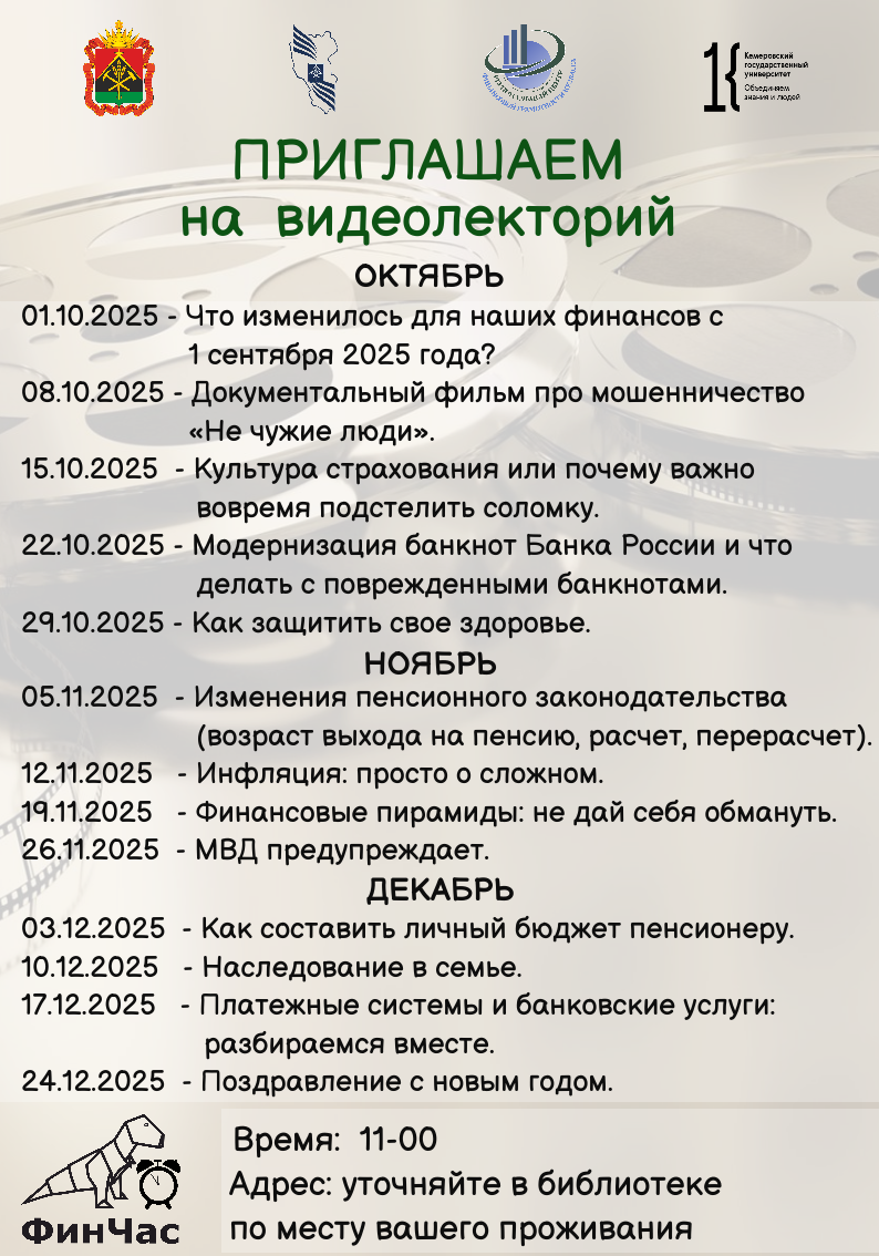 01.10 |  | Видеолекторий «Что изменилось для наших финансов с 1 сентября 2025 года?» в рамках просветительского проекта «ФинЧАС» |