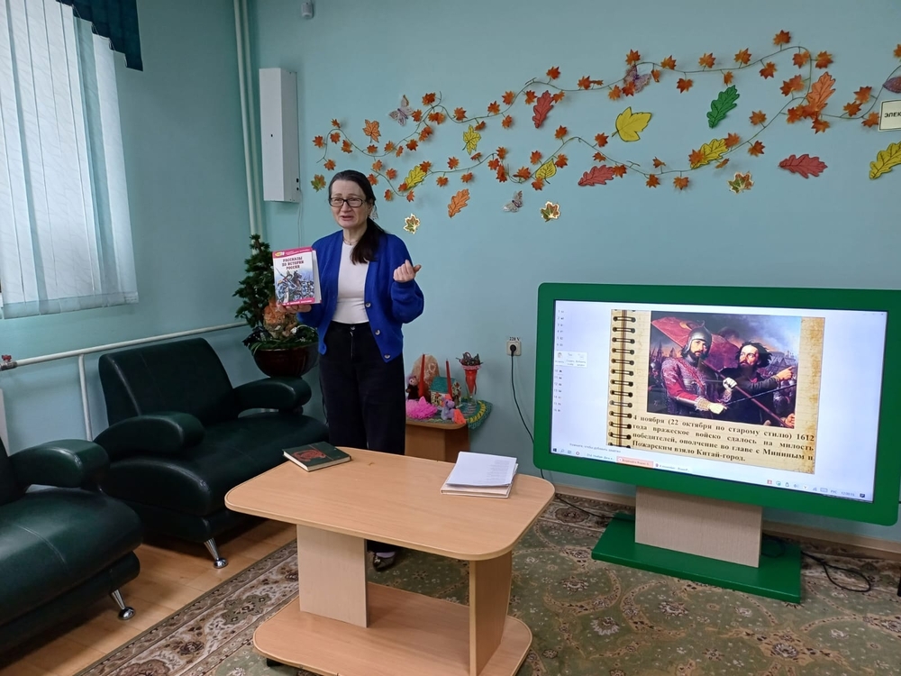 Юные читатели познакомились с историей праздника через картины русских художников и интерактивные викторины, узнав о подвигах патриарха Гермогена, Кузьмы Минина и Дмитрия Пожарского.
