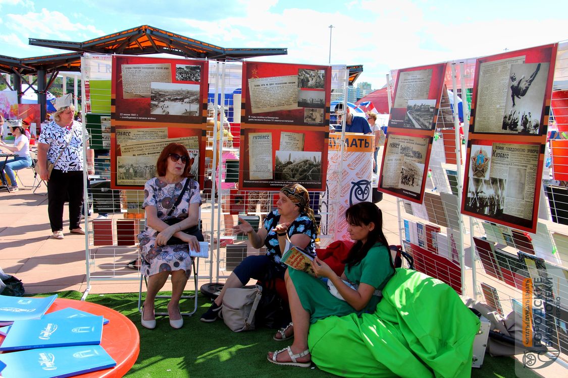 12 июня на Московской площади в честь Дня России и Дня города сотрудники городских библиотек (МАУК «МИБС») организовали для кемеровчан праздничную познавательно-развлекательную площадку «Литературный квартирник».